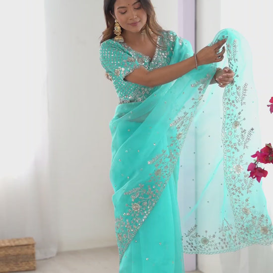 Designer Heavy Organza Silk Embroidered Saree with Blouse