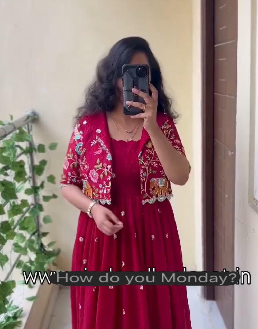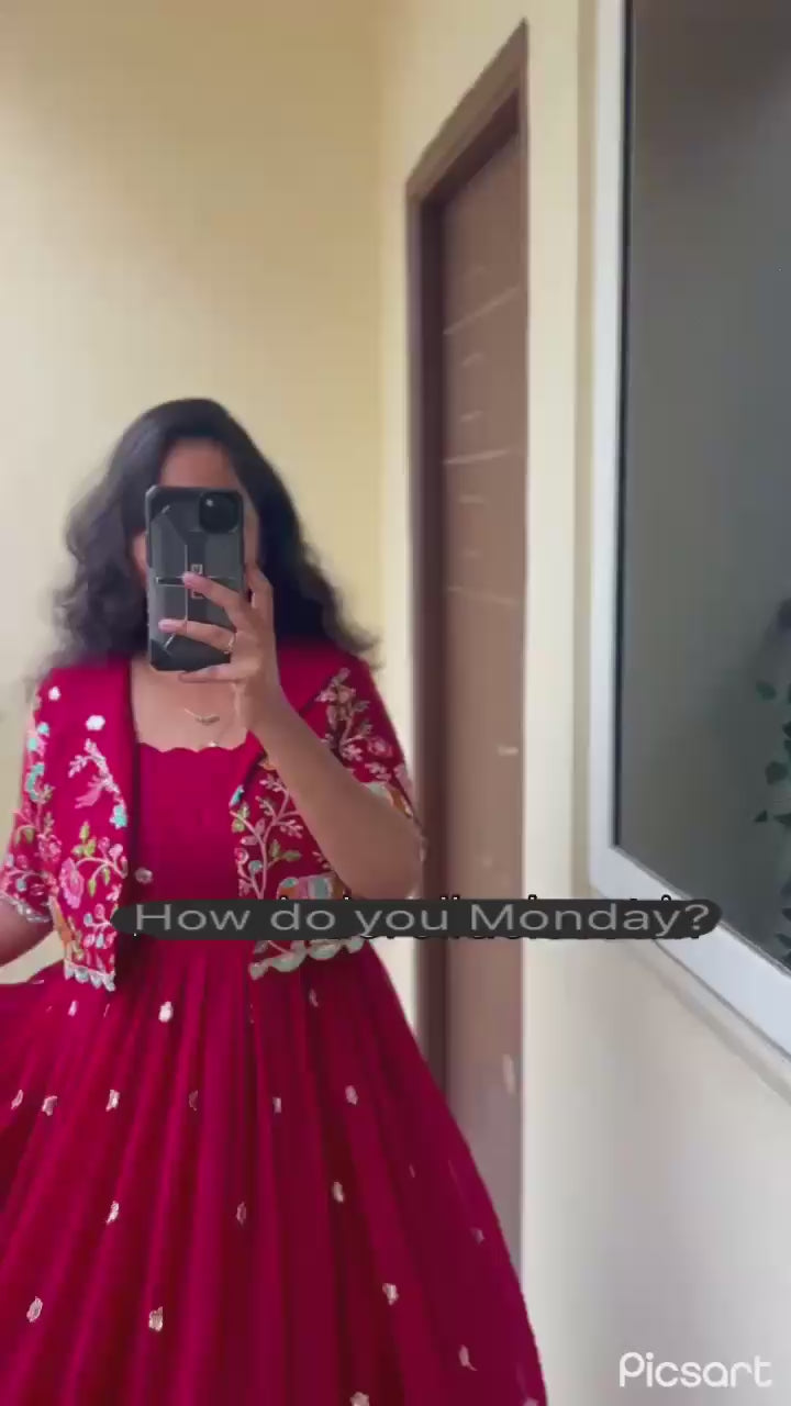 | Gown Work | Front Embroidery Work & Back Drawstring Pattern |