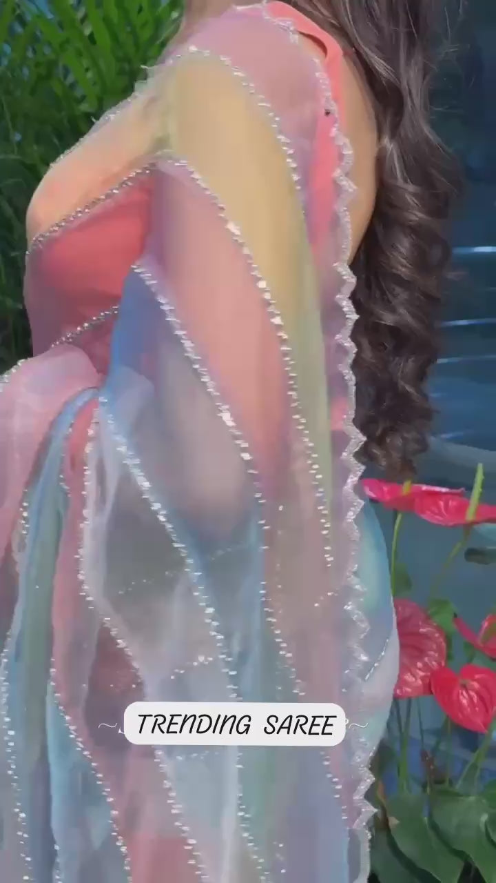 Premium Ready-to-Wear Chinon Drape Saree with Embroidered Blouse